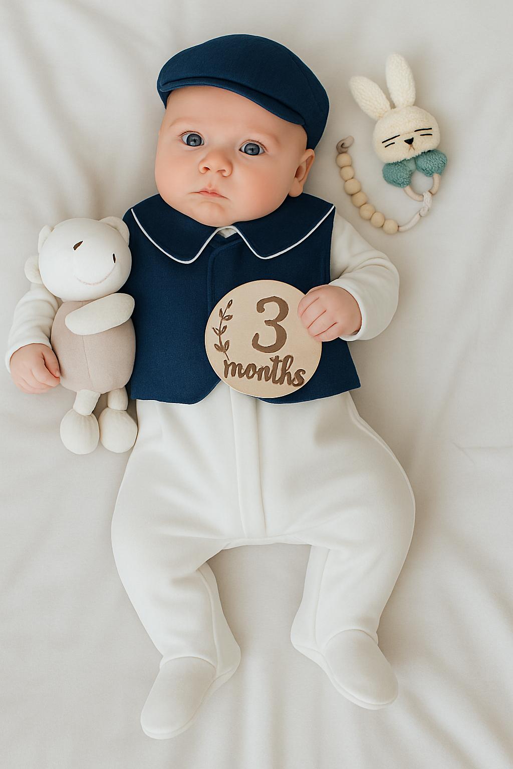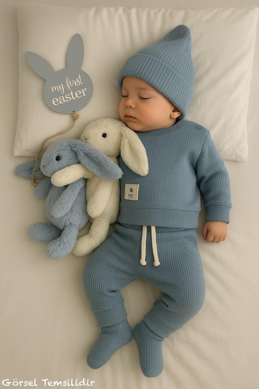 Yeni Doğan Erkek Bebek Pamuklu Spor Tasarım Kışlık Polar 2li Takım (Saks Mavi)